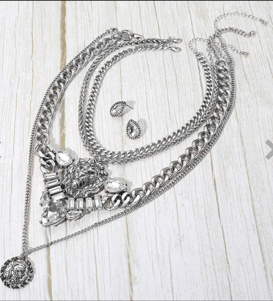 4PCS - Antique Bold Metal Lion Pendant Multi Layered Bohemian Vintage