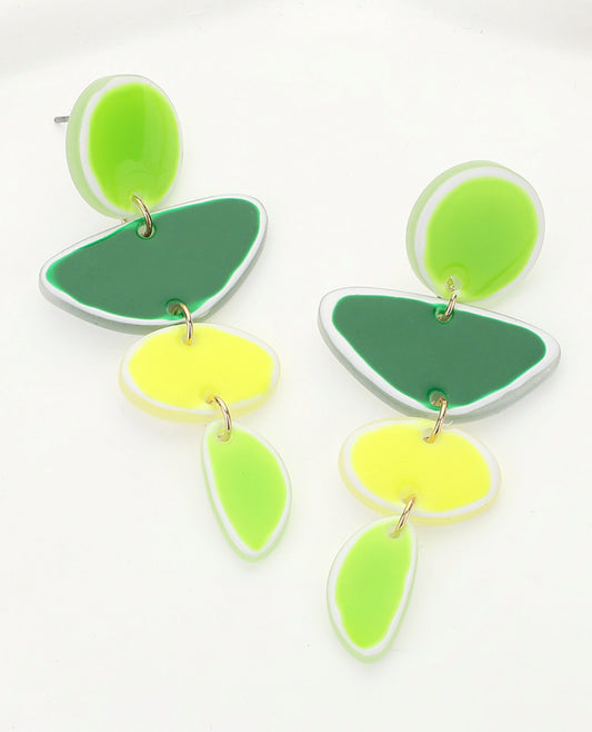 Geometric Wooden Camo Metal Resin Layered Earrings