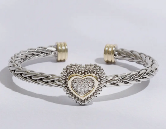 Sold outTwo-Toned Rhinestone Heart Cuff