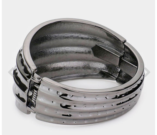 Stone Paved Oval Plate Pointed Stainless Steel Hinged Bracelet