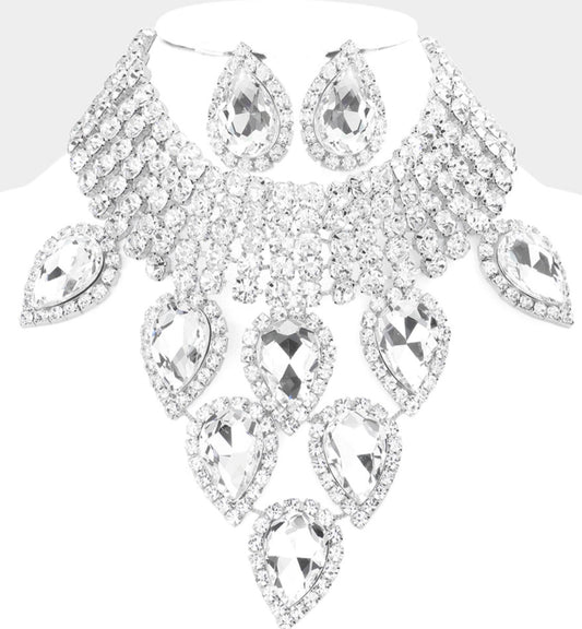 WOW FACTOR Teardrop Round Stone Embellished Statement Necklace Set