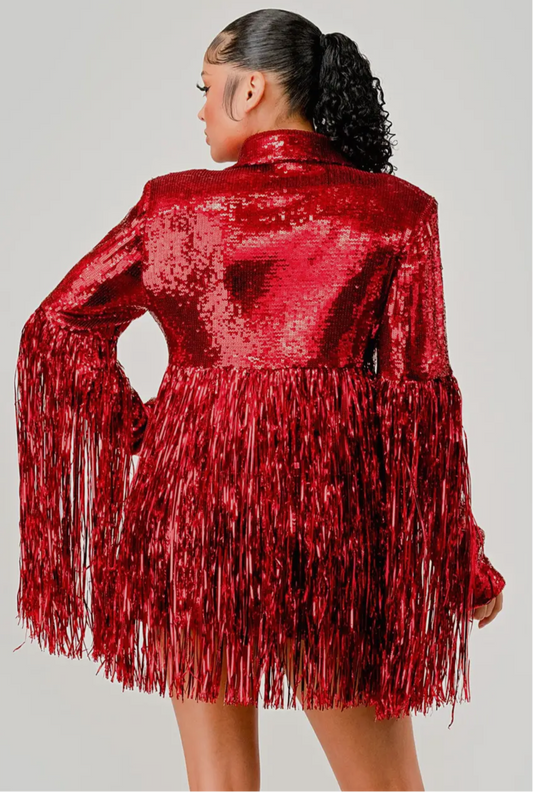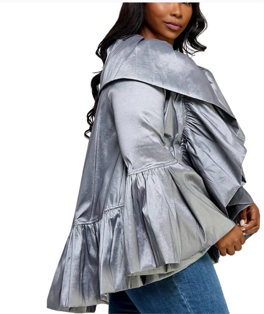 Queen Long Sleeve Denim Silver Sequin Tunic Top