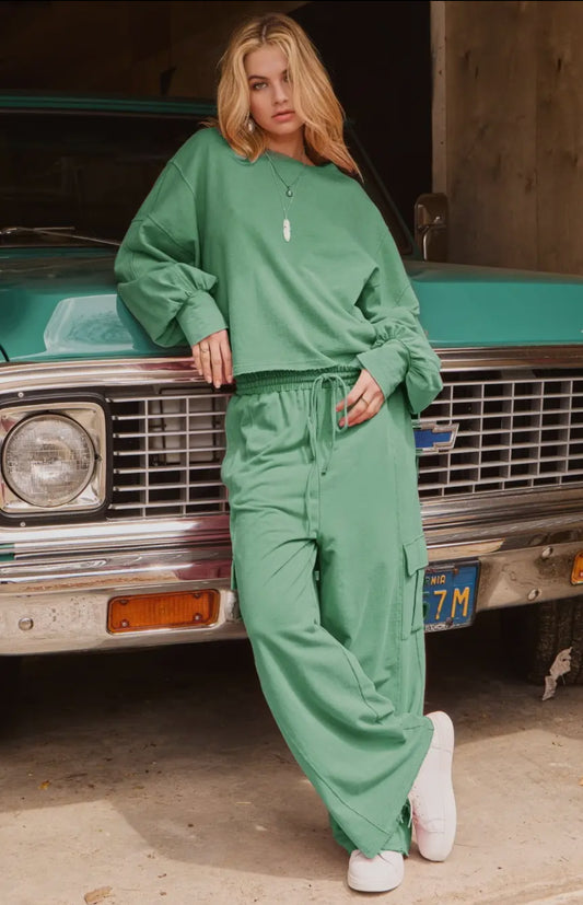 No Drama Ruffle Drawstring Jogger Pants_Brown