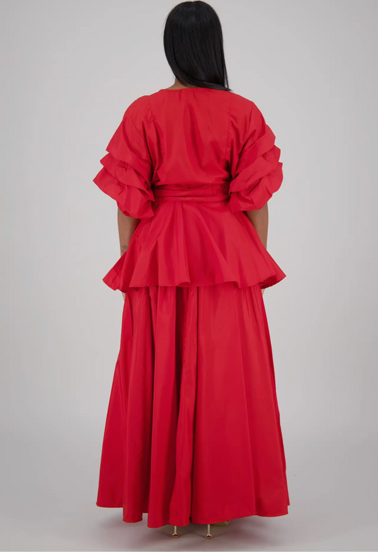 Sold outRegal Peplum 2Pc Skirt Set_Red