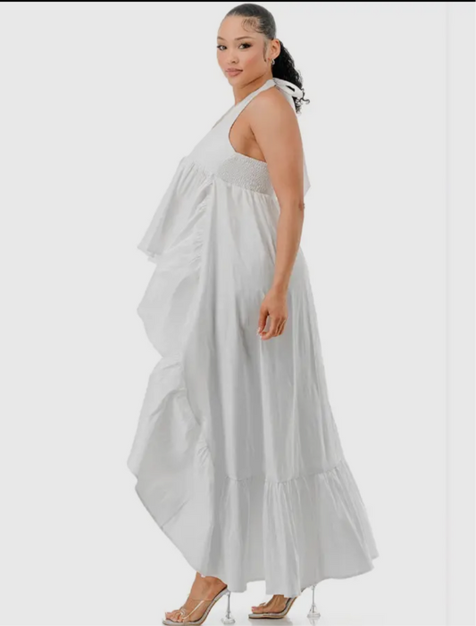 Fancy Halter Ruffle Dramatic High Low_Black Color Only