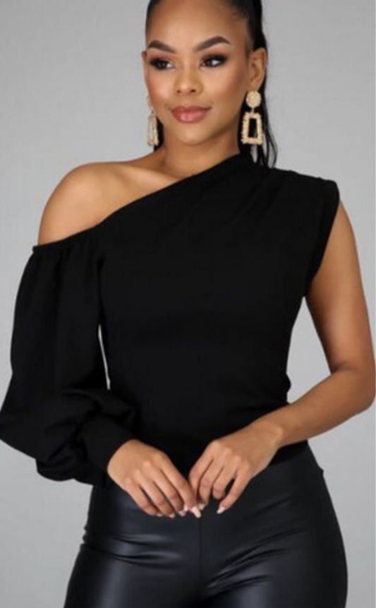 Women's one shoulder one sleeve top_Suggest to Size Up