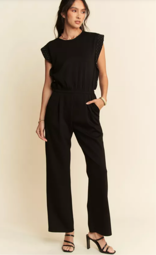 STONE DETAIL SLEEVES SOFT KNIT JUMPSUIT