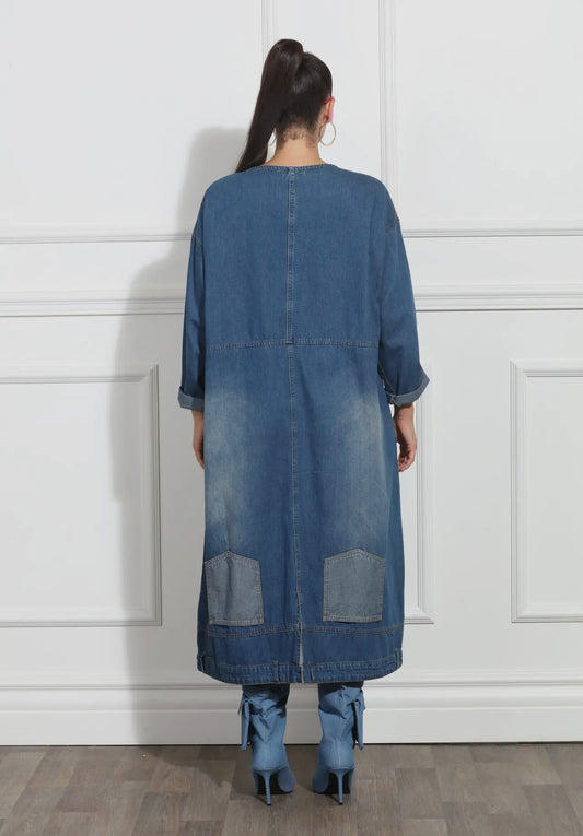 Kamala Denim Asymmetric Top Palazzo Pants Set