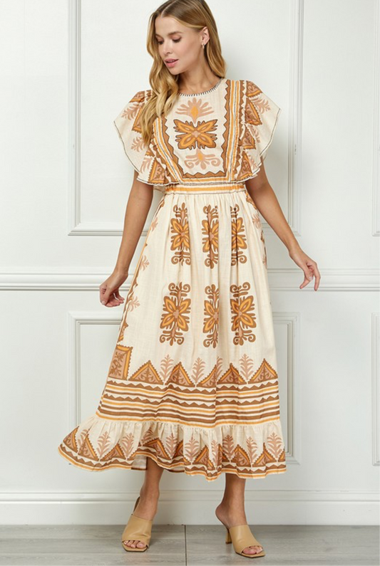 Georgia Peach FLUTTER SLEEVE MIDI DRESS