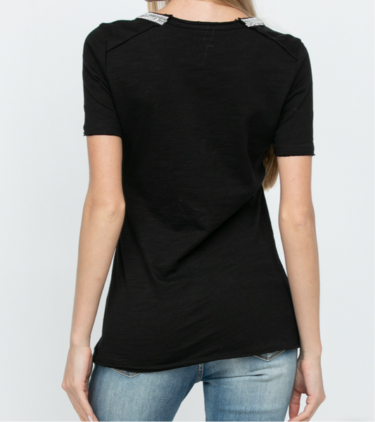 BEJEWELED NECKLINE SHORT SLEEVE TOP