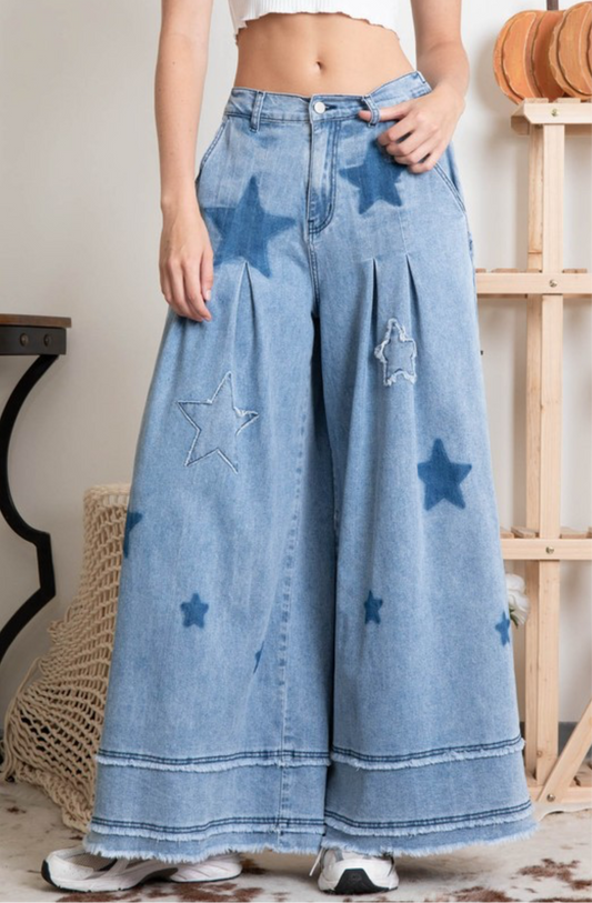 Kamala Denim Asymmetric Top Palazzo Pants Set