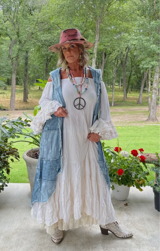 Patchwork Hooded Vest Duster
