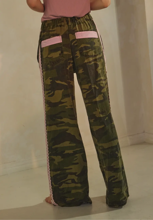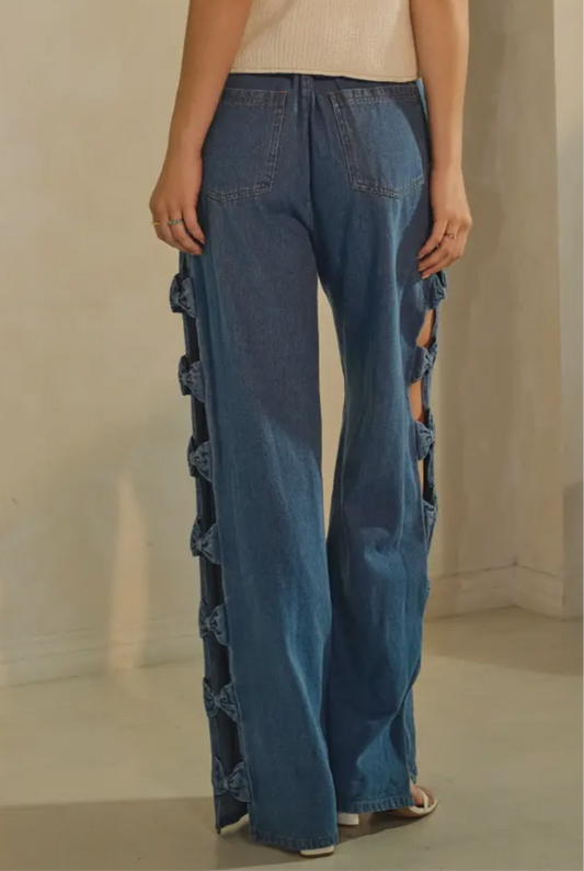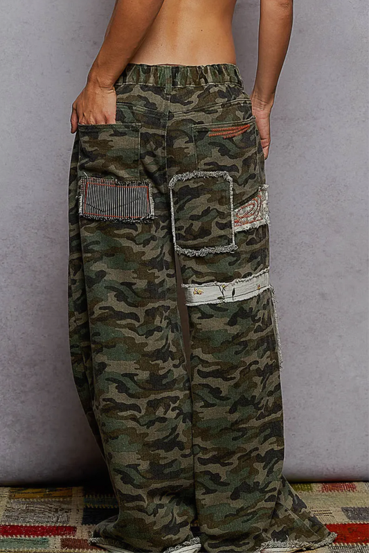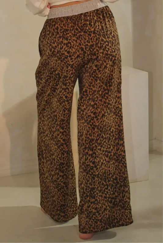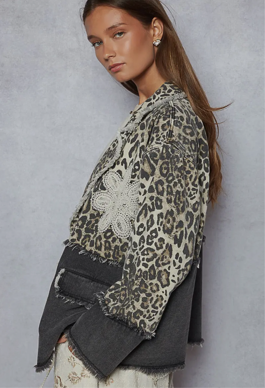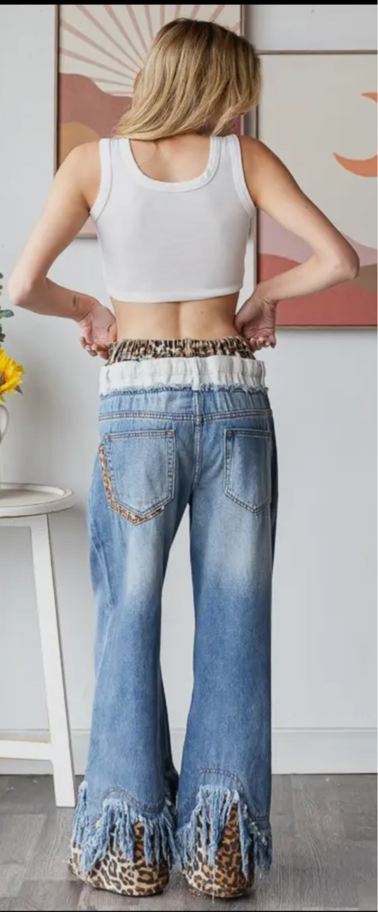 Double Waist Frayed Hem Jeans with Leopard Detail
