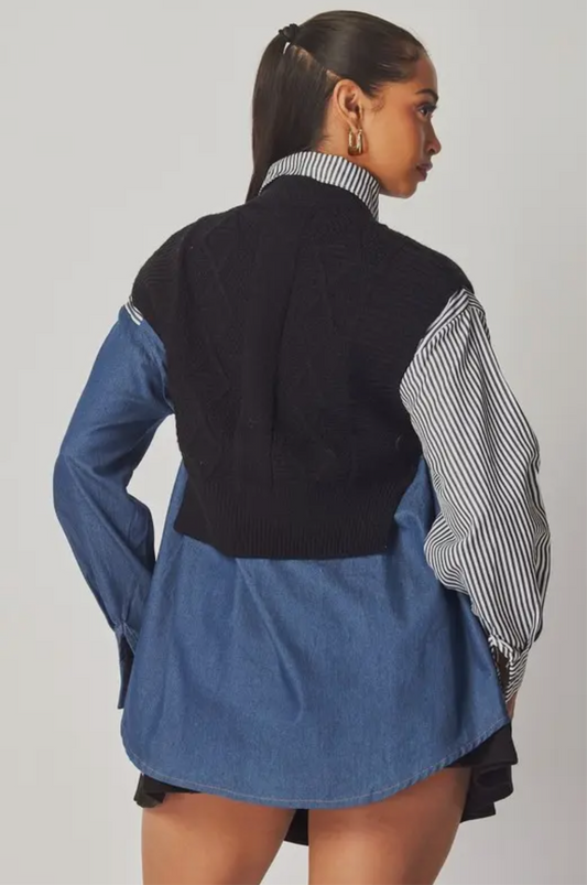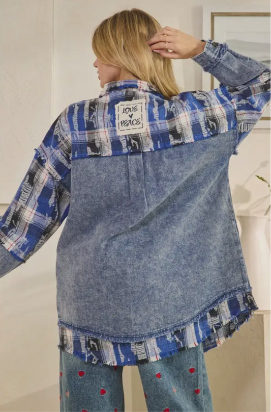 Queen Long Sleeve Denim Silver Sequin Tunic Top