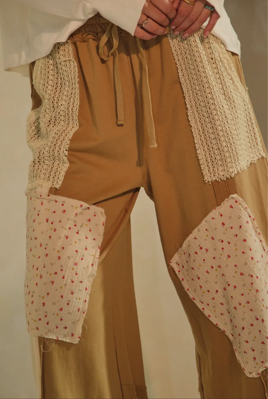 No Drama Ruffle Drawstring Jogger Pants_Brown