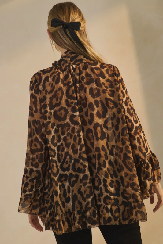 Tiff Ruffle Chiffon Layered Blouse Animal Print