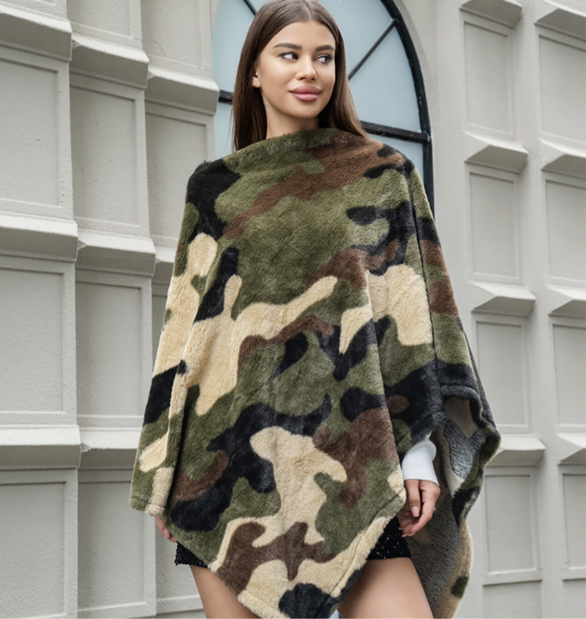 • Cozy poncho wrap featuring a bold camouflage pattern with a soft, relaxed drape. Perfect for layering over casual or dressy looks, this versatile outerwear adds effortless style and warmth to your wardrobe, making it ideal for everyday wear or seasonal outings.