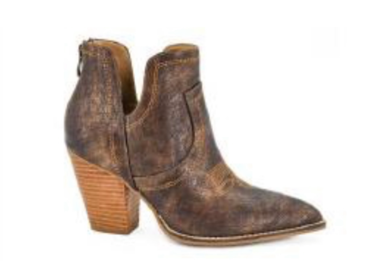 Make a statement in this rich plum western bootie with a sleek, distressed shine. The perfect blend of bold and chic, this standout shoe instantly elevates any look—from denim to dresses.