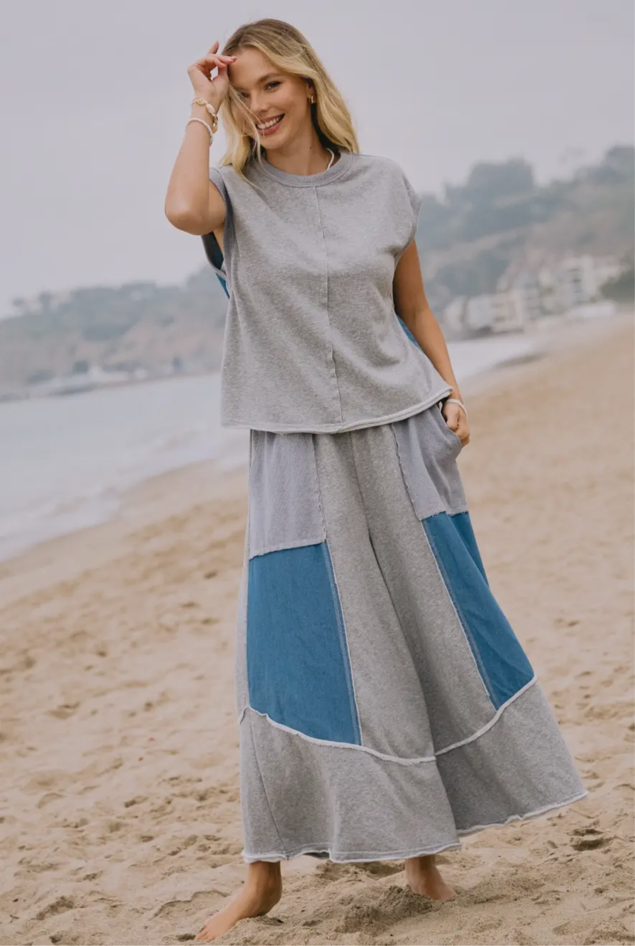 Let’s Chill Lounge Set Grey, featuring a fun denim and grey block pattern that adds a playful twist to your downtime. Perfect for relaxing at home or casual outings, this set combines comfort with a stylish edge to keep you lounging in style.