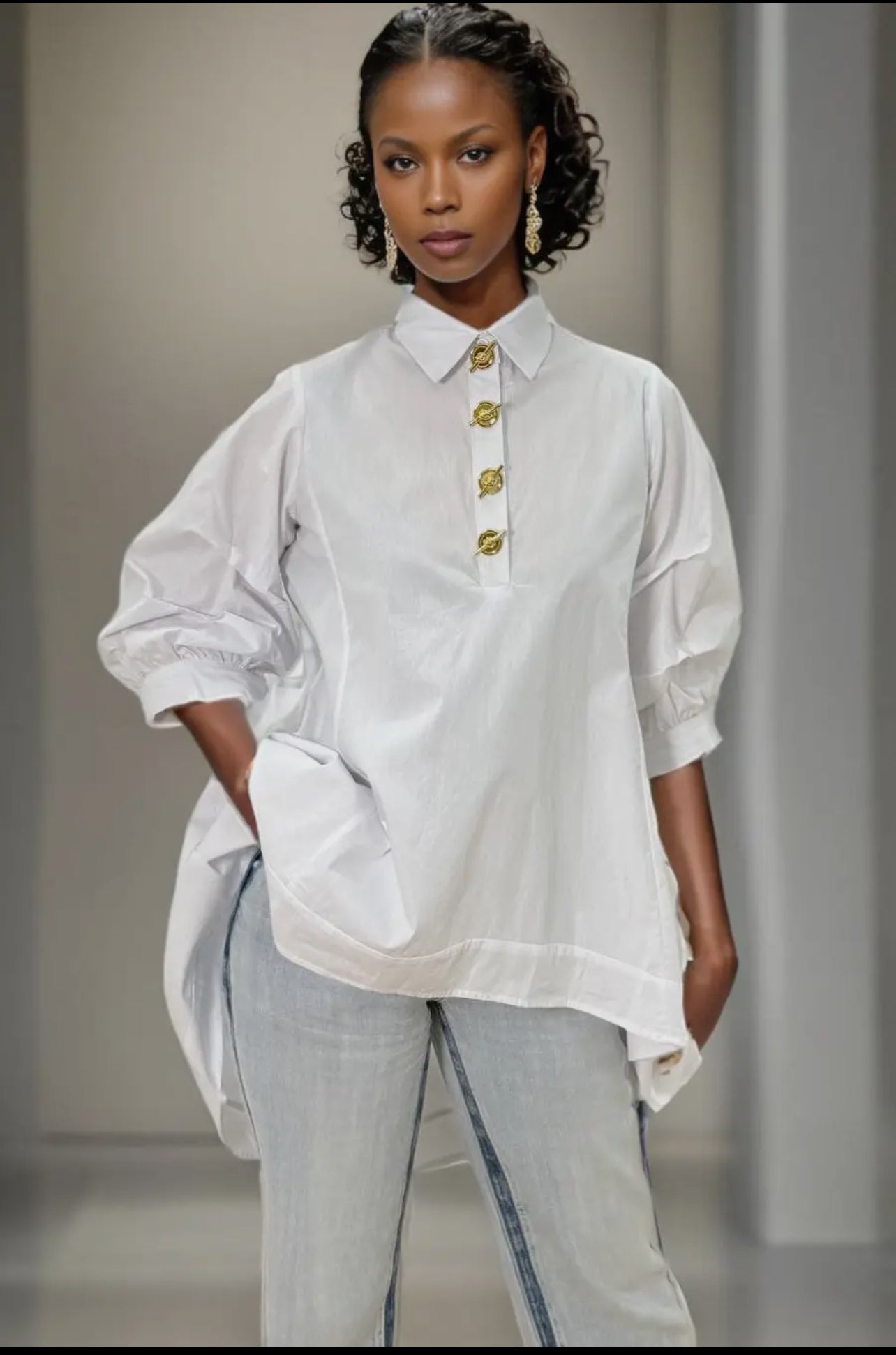 - Front partial placket with gold-tone faux-toggle embellishment