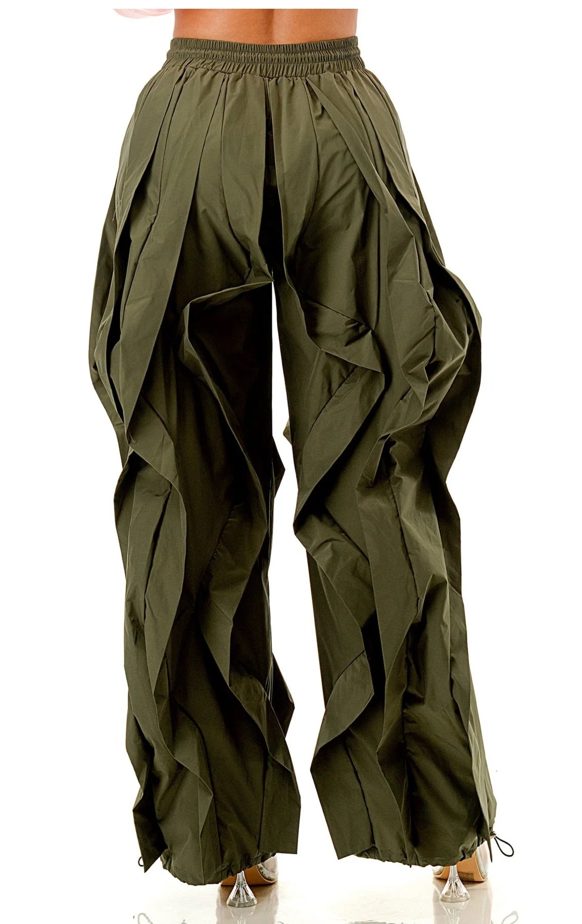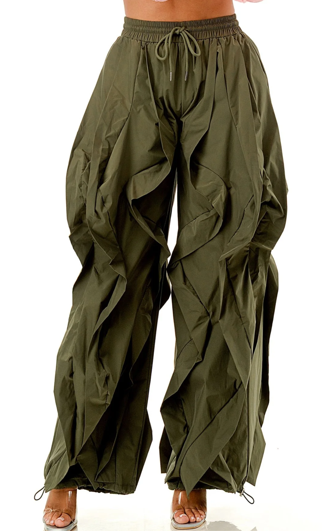 These pants redefine bold style with their voluminous silhouette and sculptural folds, creating a striking 3D effect. Featuring a comfortable elastic waistband and adjustable drawstring hem, they combine functionality with artistic design. Crafted for those who dare to stand out, these pants are perfect for making a statement in any setting.