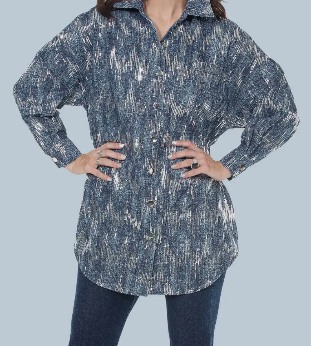 Queen Long Sleeve Denim Silver Sequin Tunic Top