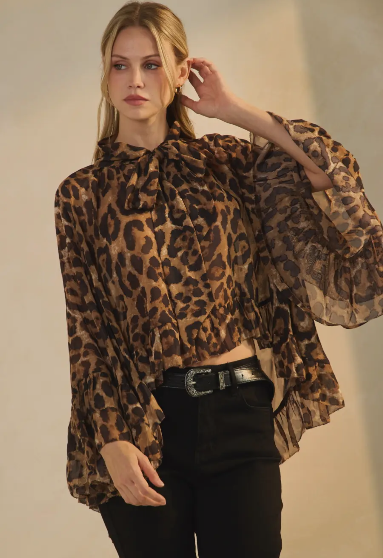 Tiff Ruffle Chiffon Layered Blouse Animal Print