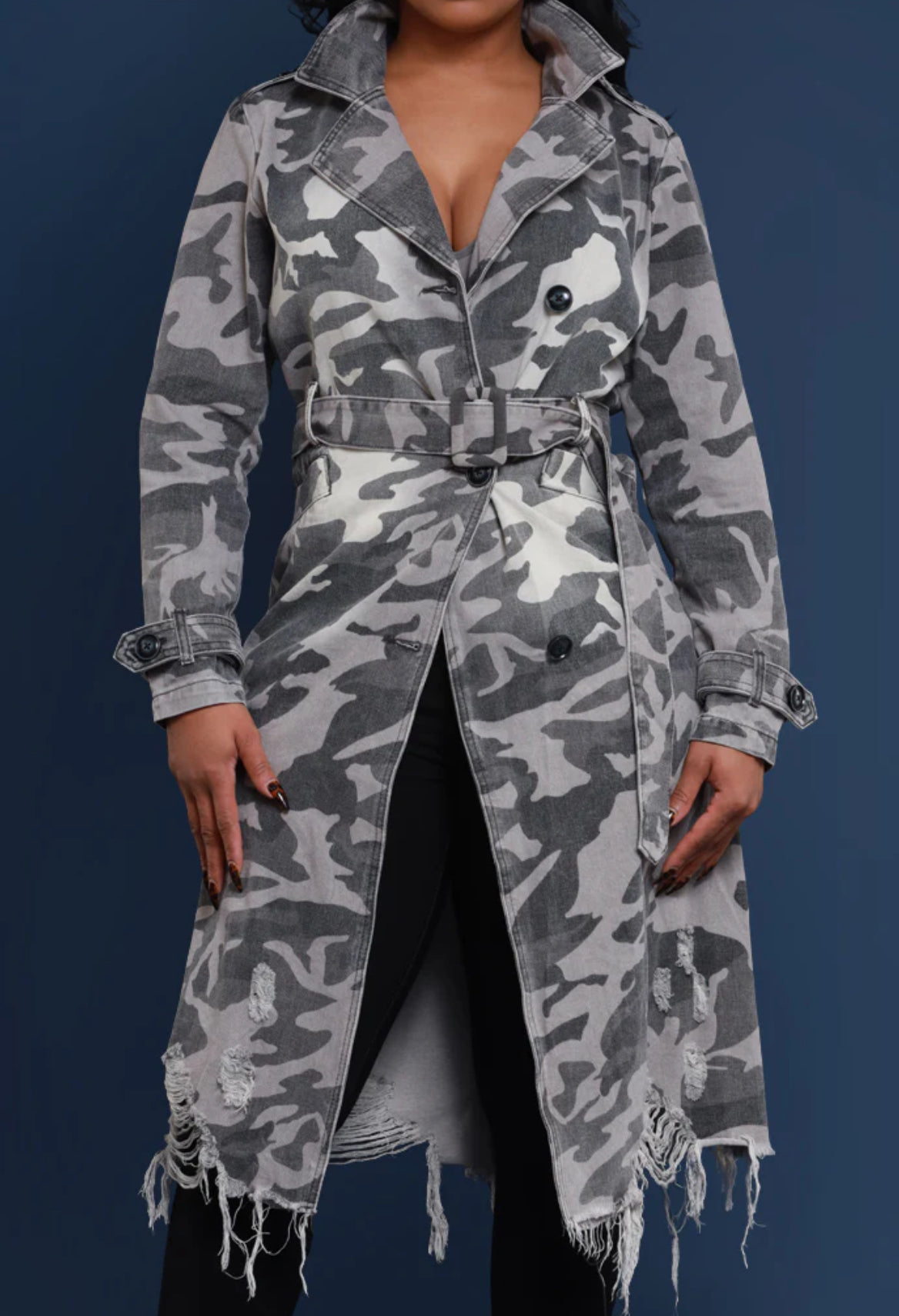 Wear It Longline Distressed Camouflage Jacket - Grey